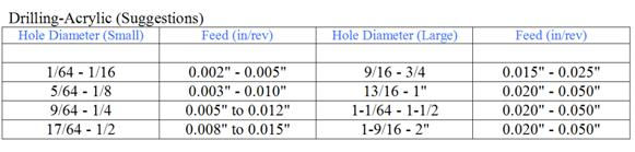 Drilling Tip: Acrylics require a drill with a tip ground to 60 - 80° (Included Angle) with 8°-12° of clearance behind each cutting edge and backing of the material with sacrificial work pieces to prevent chipping as the drill breaks through the material.